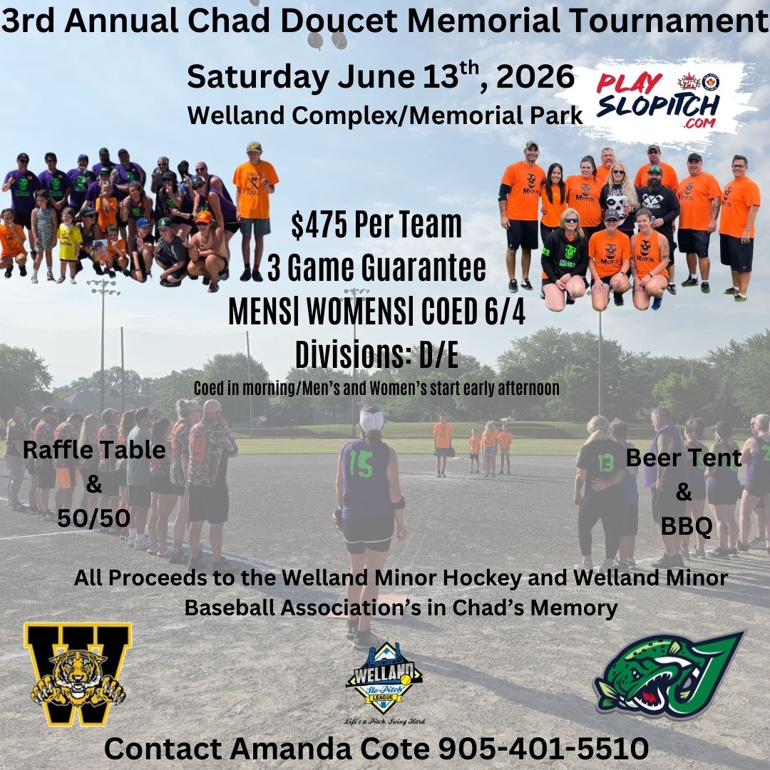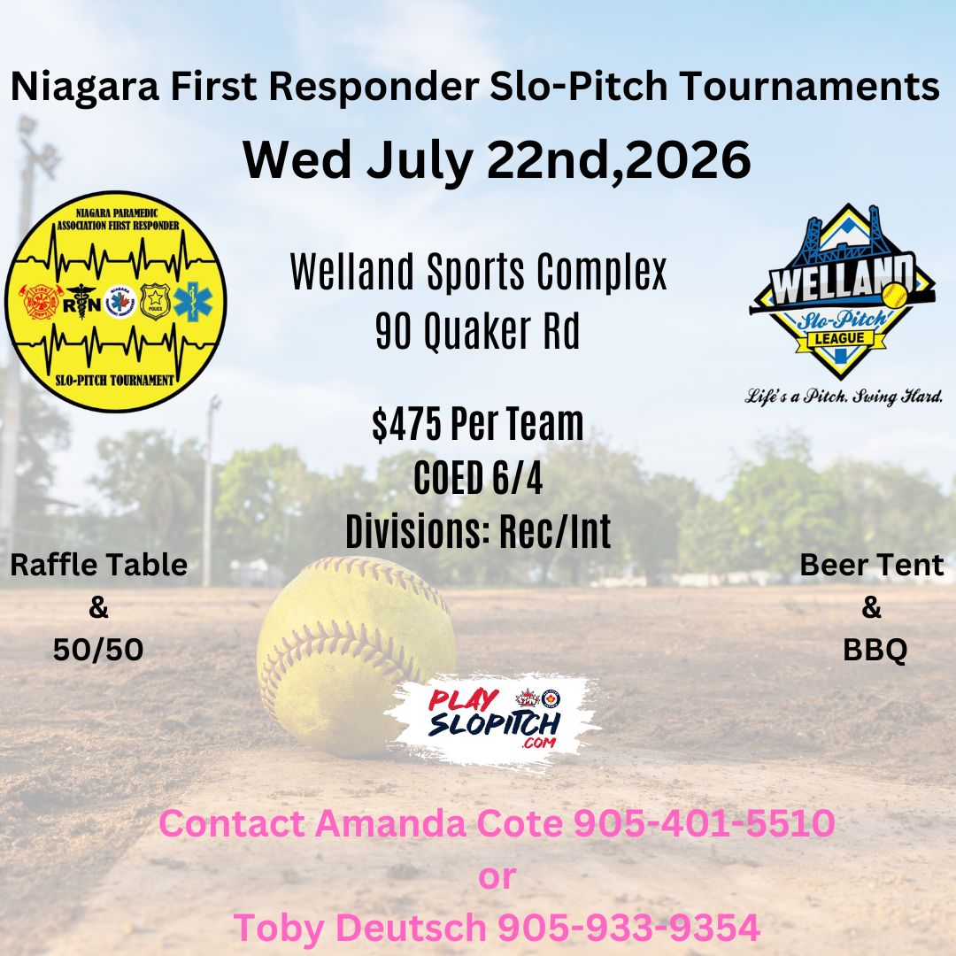 Each year the Welland Slo-Pitch League organizes several Play Slo-Pitch softball tournaments open to mens, ladies and coed teams.